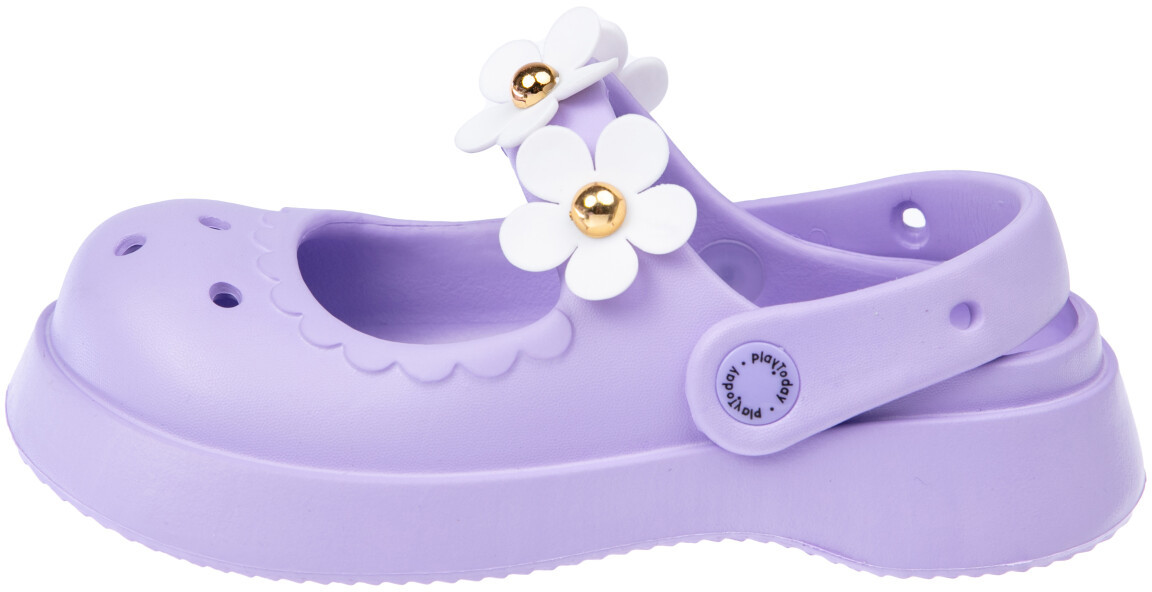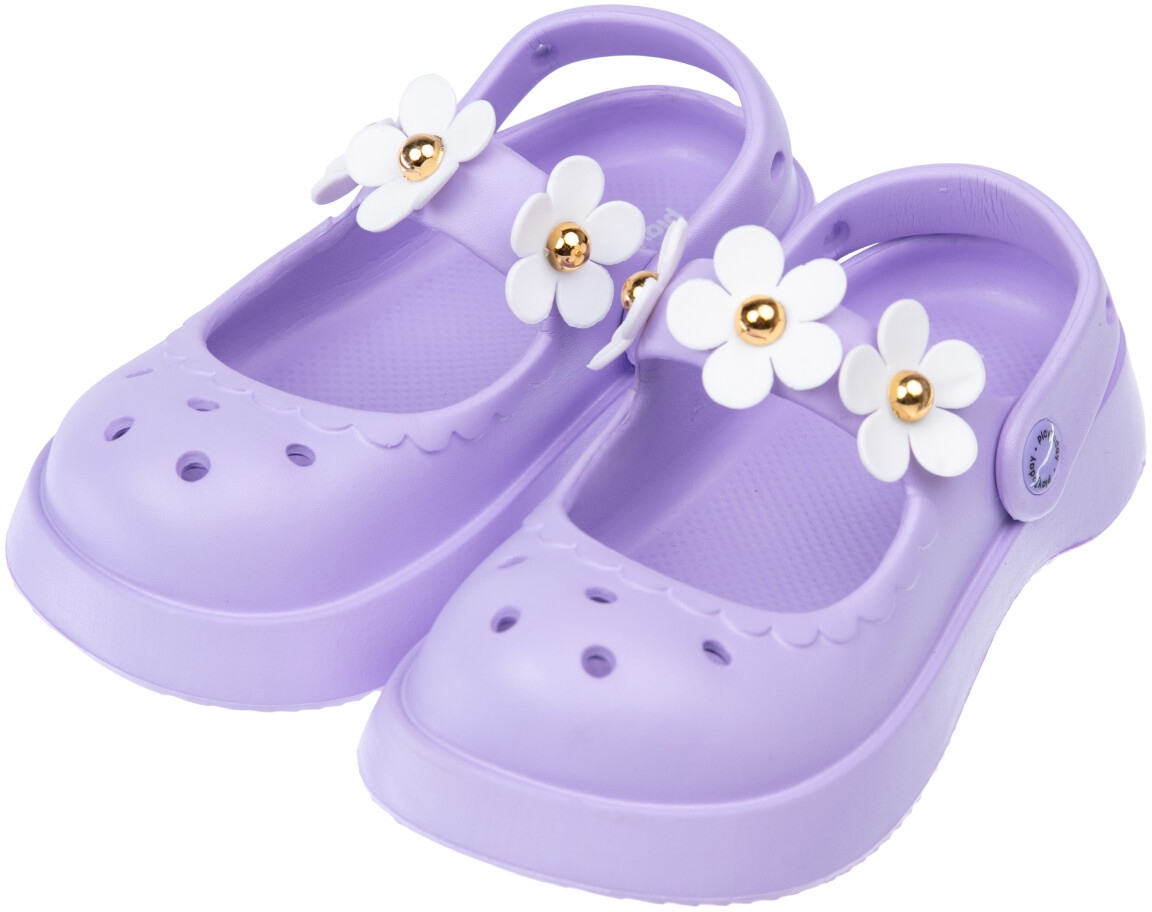 Сабо из облегченного и прочного ЭВА. Материал хорошо моется. Форма модели учитывает эргономику стопы. Модель имеет перекидной ремешок для лучшего удержания обуви на стопе. Съемные цветы можно располагать на модели в любом порядке.