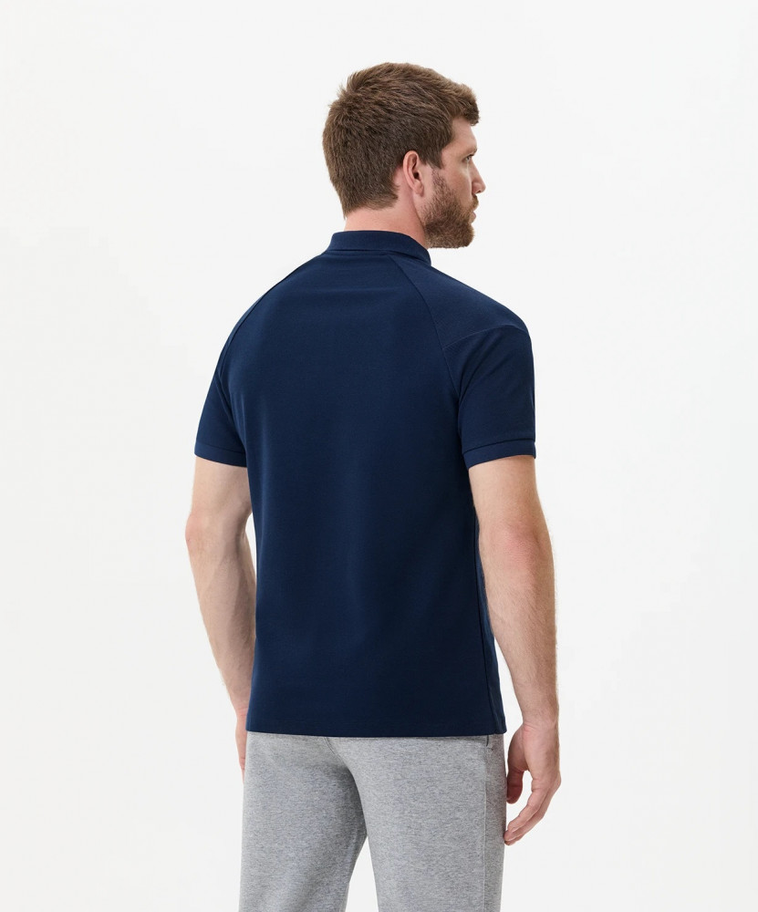 Поло изготовлено из современного материала. Высокое содержание хлопка позволяет сохранять воздухопроницаемость и эффективно отводить влагу с поверхности кожи, а полиэстер в составе обеспечивает высокую износостойкость. Такая ткань меньше мнется и не требует сложного ухода, форма и цвет устойчивы к стиркам. Дизайн поло выполнен в стилистике коллекции Camp 2. Модель дополнена рукавом реглан со швом и логотипом бренда, вышитым справа.
