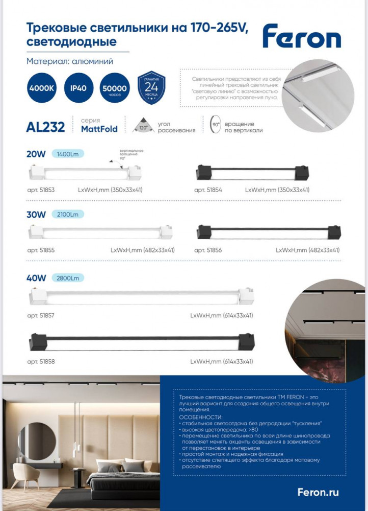 Feron Светильник трековый светодиодный на шинопровод AL232