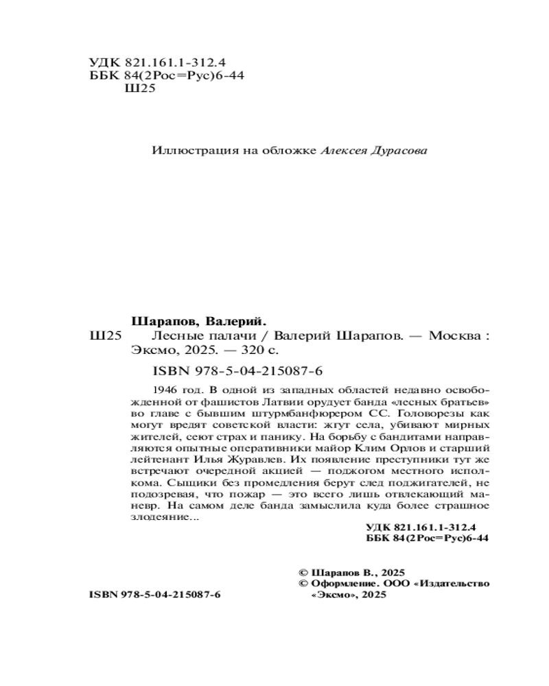 💳 Оплатить за товар можно при получении 🇰🇿 Есть бесплатная доставка по Казахстану 🎁 Копите бонусы с каждой покупки Серия: Тревожная весна 45-го. Послевоенный детектив 1946 год. В одной из западных областей недавно освобожденной от фашистов Латвии орудует банда «лесных братьев» во главе с бывшим штурмбаннфюрером СС. Головорезы как могут вредят Советской власти: жгут села, убивают мирных жителей, сеют страх и панику. На борьбу с бандитами направляются опытные оперативники майор Клим Орлов и старший лейтенант Илья Журавлев. Их появление преступники тут же «встречают» очередной акцией — поджогом местного исполкома. Сыщики без промедления берут след поджигателей, не подозревая, что пожар — это всего лишь отвлекающий маневр. На самом деле банда замыслила куда более страшное злодеяние... |
