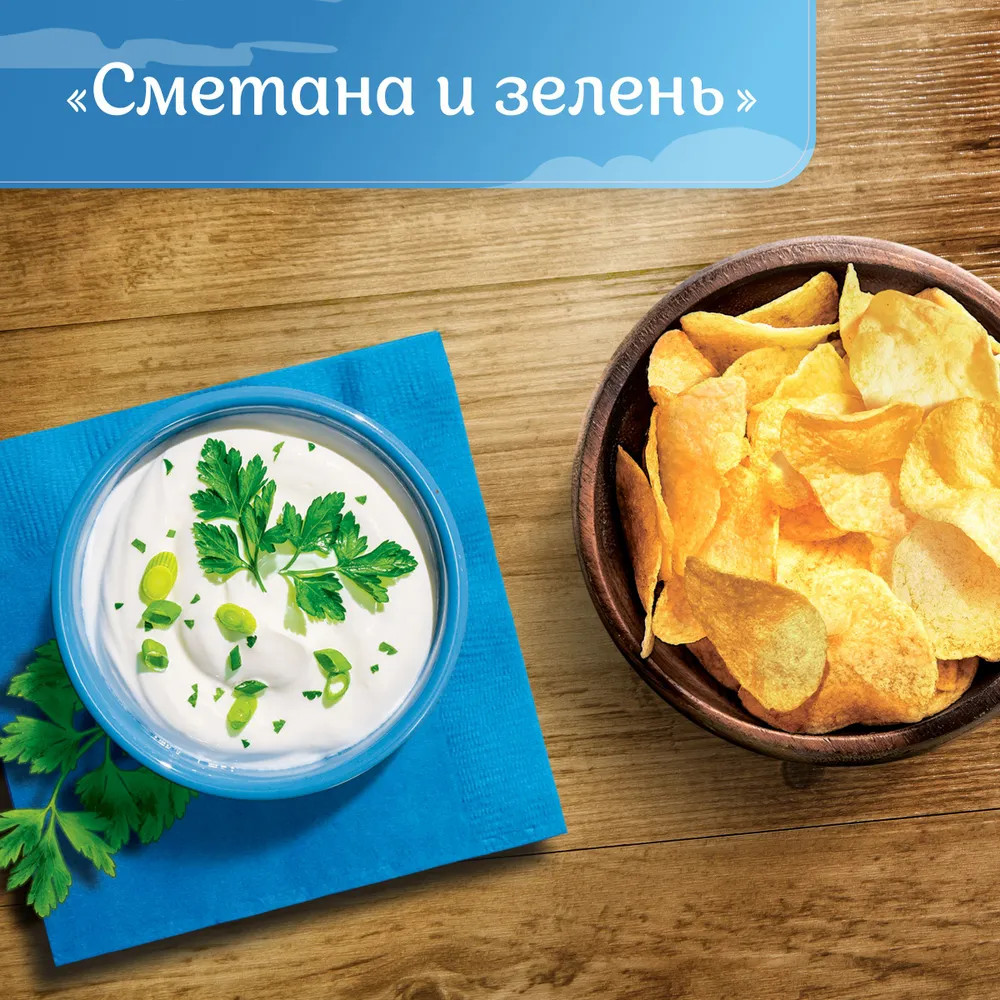 Картофель, растительные масла, ароматизатор [соль, вкусоароматические вещества (содержат луковый порошок, петрушку), порошок молочной сыворотки, сахар, усилители вкуса и аромата (глутамат натрия 1-замещенный, 5’-инозинат натрия 2-замещенный, 5’-гуанилат натрия 2-замещенный), регуляторы кислотности (лимонная кислота, диацетат натрия)].