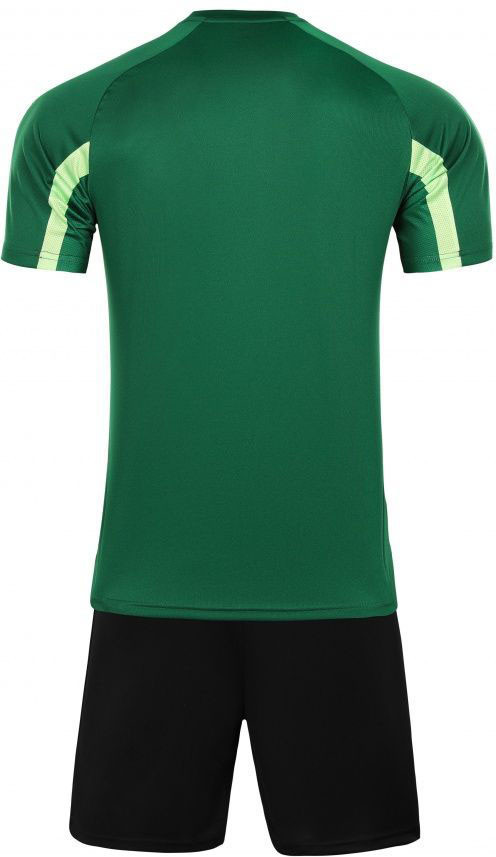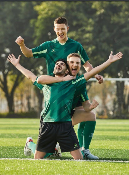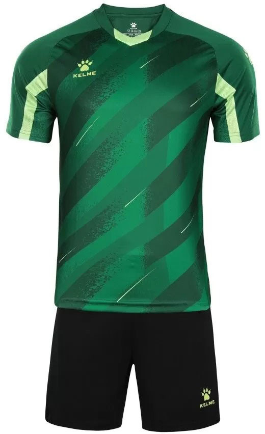 Футбольная форма Kelme состоит из футболки и шорт. Футболка имеет форму рукавов реглан с сетчатыми вставками в подмышечной зоне для дополнительной вентиляции. Футболка выполнена из тонкого, приятного на ощупь и очень прочного полиэстера, который великолепно проветривается и выводит влагу. Удобный V-образный ворот не будет давить в зону яремной ямки и доставлять дискомфорт во время игры. Шорты классического кроя, имеют широкую поясную резинку с шнурком для дополнительной фиксации. Карманы в шортах не предусмотрены. Футбольная форма Kelme — спортивная экипировка, дизайн которой разработан с учетом особенностей техники футбола, футбольной моды, традиций и условий, в которых проходят игры.