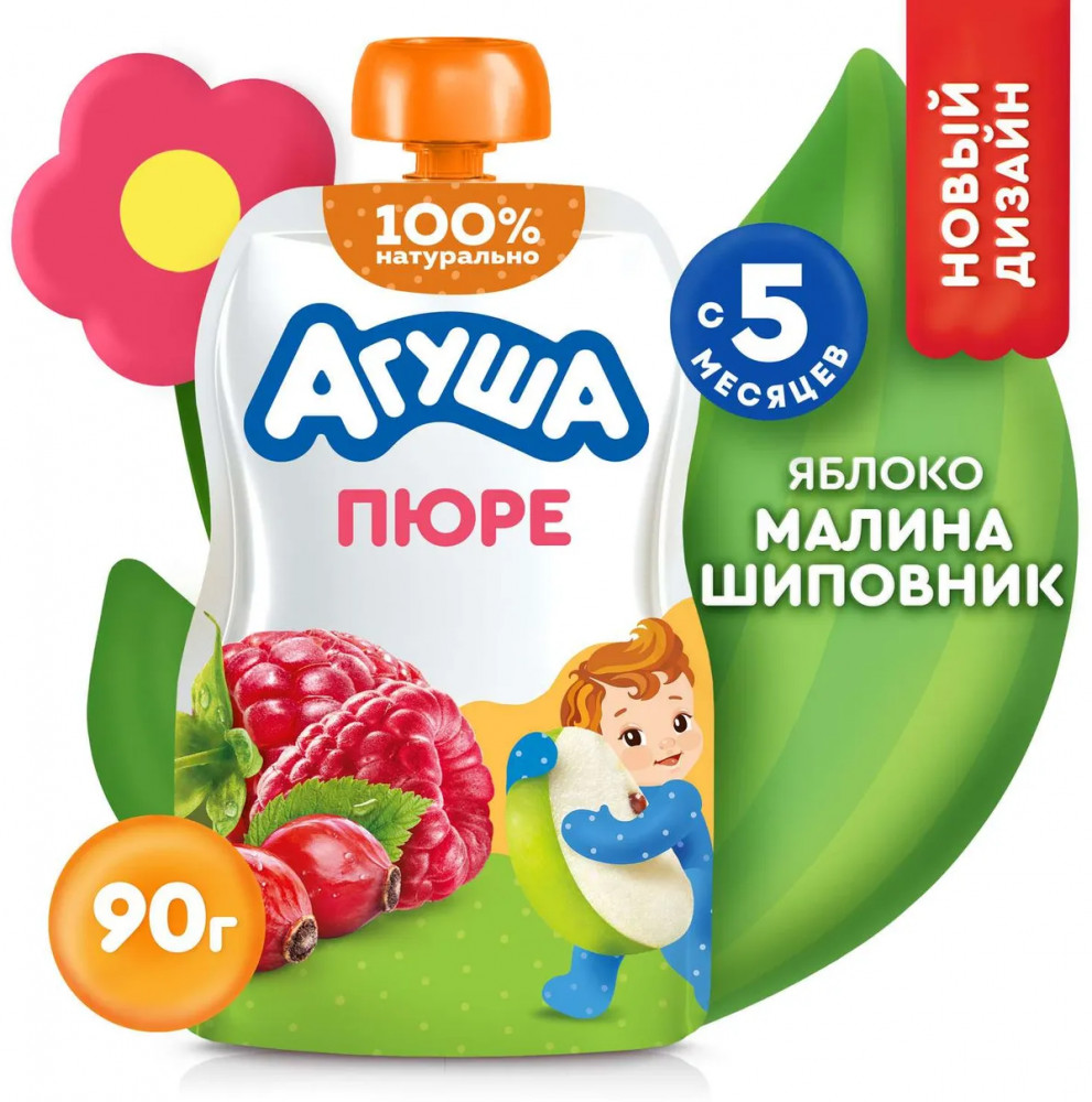 Агуша Пюре фруктовое «Яблоко-малина-шиповник»
