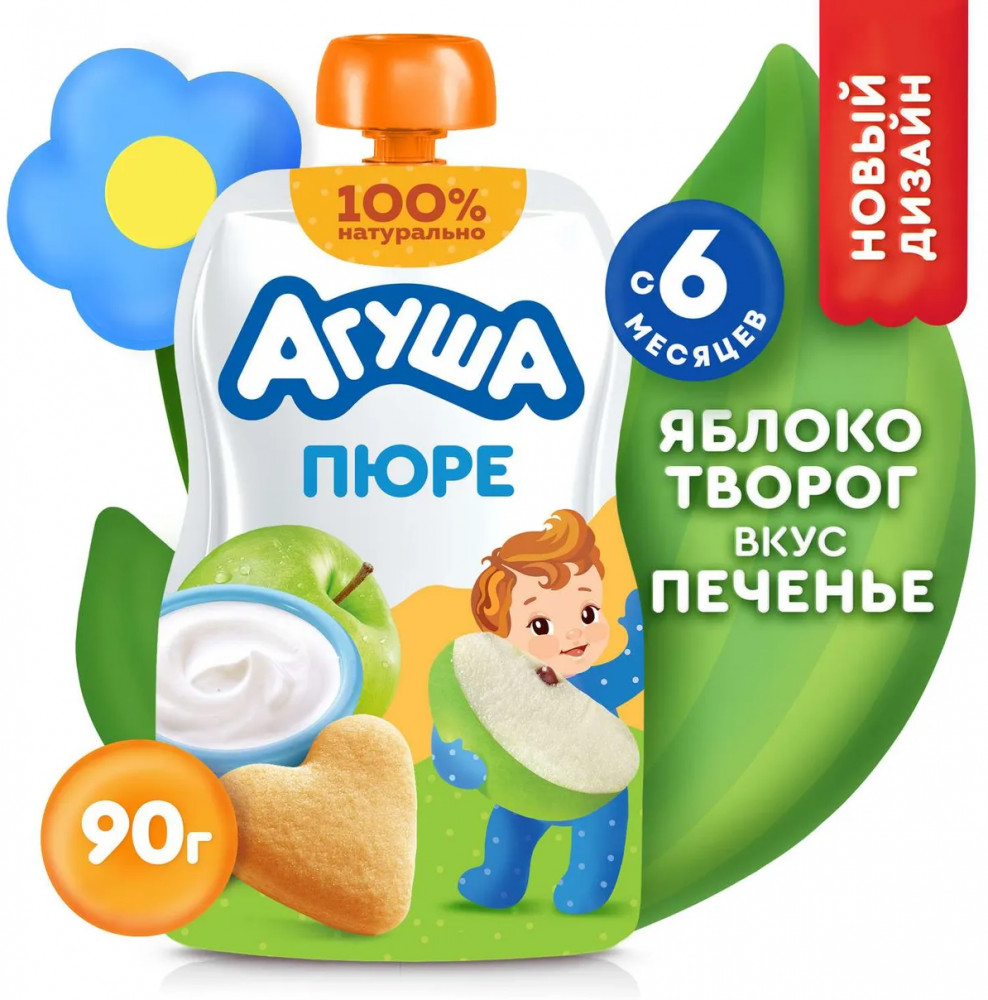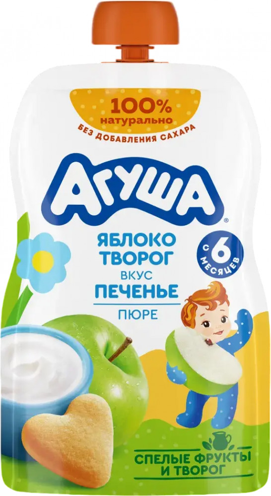 Агуша Пюре фруктовое «Яблоко-творог-печенье»