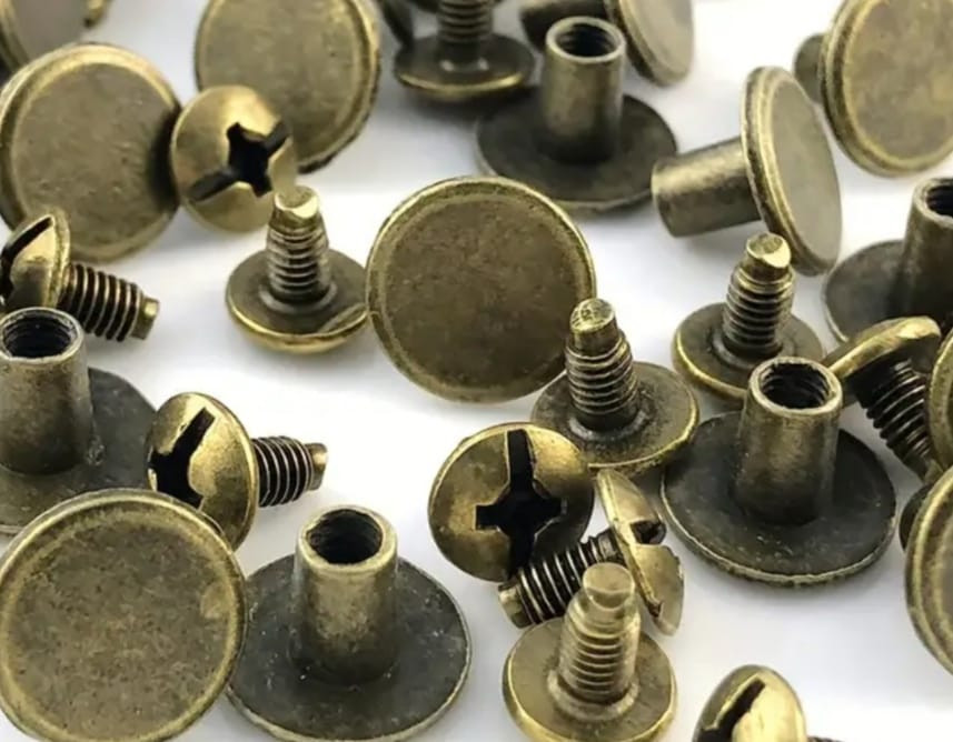 💳 Оплатить за товар можно при получении 🇰🇿 Есть бесплатная доставка по Казахстану от 1 дня 🎁 Копите бонусы с каждой покупки Винт ременной — крепежный элемент для соединения пряжки с ремнем. Также может использоваться как фурнитура для сумок, одежды, аксессуаров из кожи. Цвет бронза. Количество 20шт. Размер: диаметр шляпки 0.85 см, высота ножки 0.6 см. |