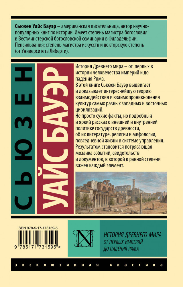 💳 Оплатить за товар можно при получении 🇰🇿 Есть бесплатная доставка по Казахстану от 1 дня 🎁 Копите бонусы с каждой покупки Серия: Эксклюзивная классика История Древнего мира — от первых в истории человечества империй и до падения Рима. В этой книге Сьюзен Бауэр выдвигает и доказывает интереснейшую теорию взаимодействия и взаимопроникновения культур самых разных западных и восточных цивилизаций. Не просто сухие факты, но подробный и яркий рассказ о внешней и внутренней политике государств древности, об их литературе, религии и мифологии, повседневной жизни и системе управления. Результатом становится потрясающая мозаика событий, свидетельств и документов, в которой в равной степени важен каждый элемент. |