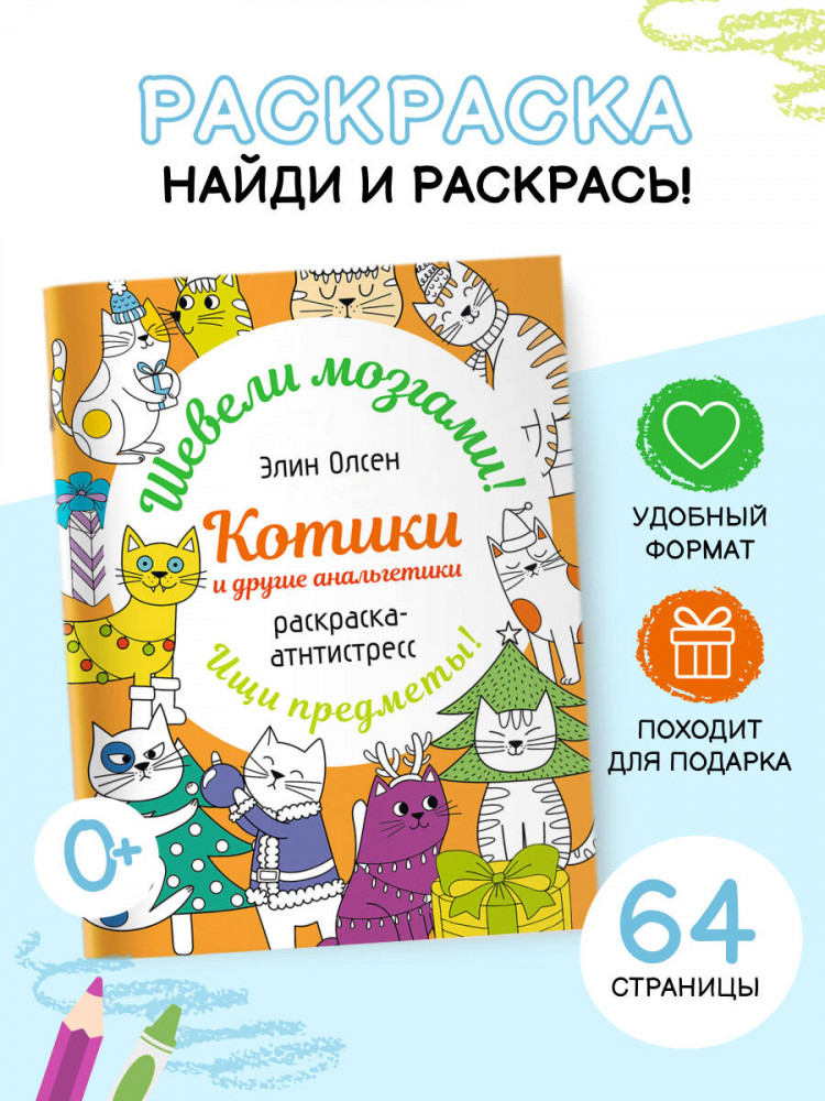 💳 Оплатить за товар можно при получении 🇰🇿 Есть бесплатная доставка по Казахстану от 1 дня 🎁 Копите бонусы с каждой покупки Серия: Раскраска: шевели мозгами Раскраски для очень творческих и шибко умных! Забавные арт-приключения от датской художницы Элин Олсен. Творческие раскраски не только для релакса, но и для саморазвития. В каждой картинке спрятана маленькая загадка. Включай логику, ищи предметы, дорисовывай, придумывай, изобретай палитры — шевели мозгами! В этой раскраске спрятались котики и другие уютные существа — найди их всех! Выполняй арт-задания или просто погрузись в релакс-раскрашивание. |
