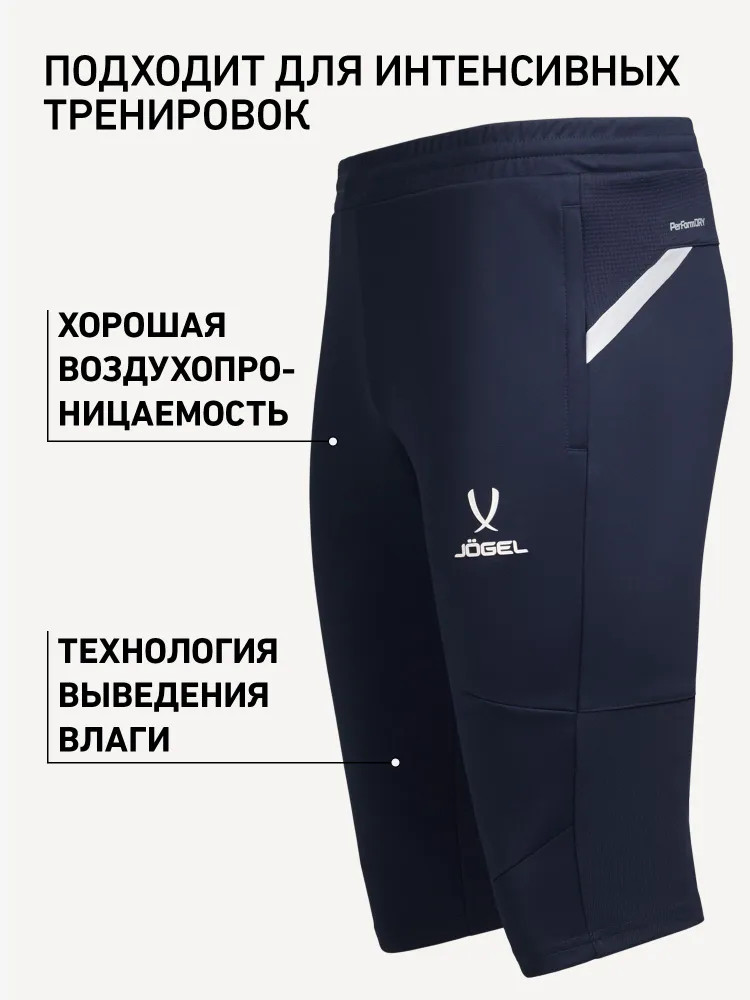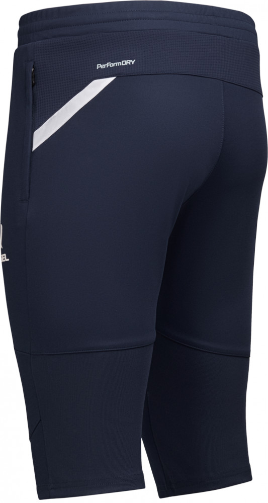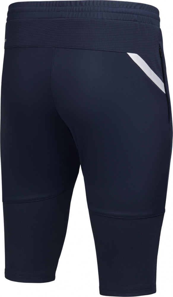 Pro Training Pants 3/4 — спортивные брюки для тренировок любой интенсивности. Модель оптимальна как для профессионалов, так и любителей: продуманный крой с оригинальным дизайнерским решением обеспечит максимальный комфорт. Сочетание трех видов высокотехнологичной ткани учитывает все потребности спортсмена. Сетчатые вставки, расположенные на фигурной кокетке сзади, обеспечивают качественное воздухоотведение в местах, требующих дополнительной вентиляции. Идеальное прилегание достигается использованием рубчатой ткани на задней поверхности брюк, что позволяет спортивным штанам точно подстраиваться под движения тела, а для оптимальной посадки спереди на колене проработано решение в виде вытачек. Основная ткань имеет специальное переплетение Double Weave. Эластичный пояс надежно фиксирует изделие на бедрах при помощи завязок-шнурков, боковые карманы застегиваются на молнию. С левой стороны располагается белый логотип, сделанный из специального силиконового материала по технологии 3D-нанесения.