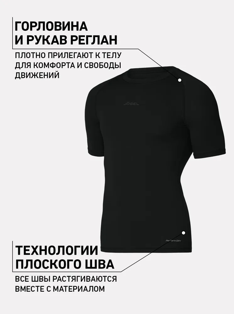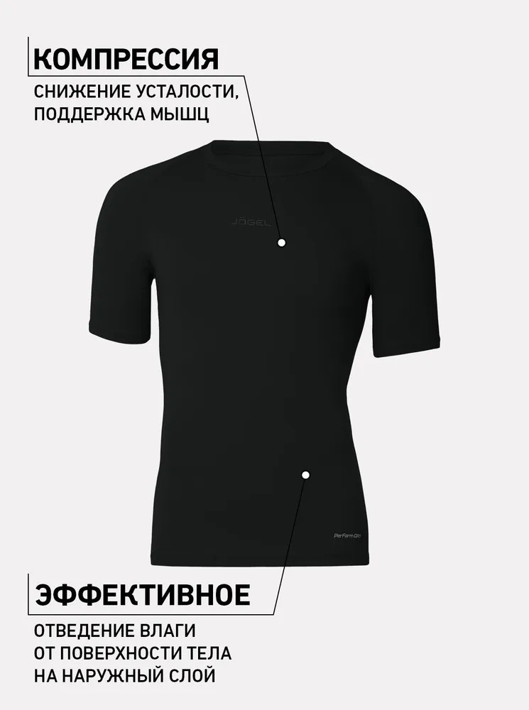 Компрессионная футболка с коротким рукавом оптимальна для занятий спортом. Модель облегающего кроя изготовлена из качественной ткани с функцией PerFormDRY: материал эффективно отводит влагу с поверхности тела на наружный слой, придает необходимую эластичность изделию и обеспечивает возвращение в первоначальное состояние при растяжении. Ткань также обладает компрессионными свойствами, поддерживая мышцы в тонусе и снижая усталость. Круглая горловина и рукав реглан плотно прилегают к телу, гарантируя комфорт во время занятий и полную свободу движений. В модели дополнительно использована технология «плоский шов», исключающая дискомфорт при эксплуатации изделия и увеличивающая срок службы компрессионной футболки благодаря использованию эластичных нитей повышенной прочности. Спортивная футболка с двумя логотипами Jögel, расположенными посередине спереди и сзади, прекрасно сочетается с другой продукцией бренда. PerFormDRY — технология обработки ткани, которая помогает спортсменам оставаться сухими и чувствовать себя комфортно при интенсивных нагрузках.