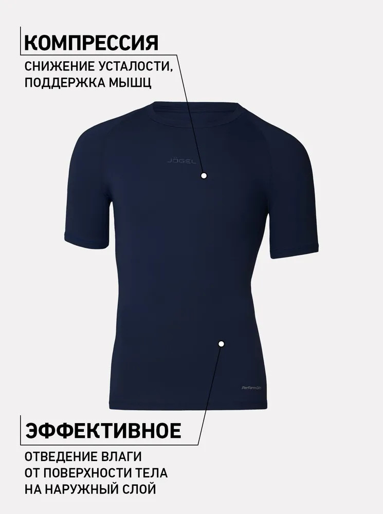 Компрессионная футболка с коротким рукавом оптимальна для занятий спортом. Модель облегающего кроя изготовлена из качественной ткани с функцией PerFormDRY: материал эффективно отводит влагу с поверхности тела на наружный слой, придает необходимую эластичность изделию и обеспечивает возвращение в первоначальное состояние при растяжении. Ткань также обладает компрессионными свойствами, поддерживая мышцы в тонусе и снижая усталость. Круглая горловина и рукав реглан плотно прилегают к телу, гарантируя комфорт во время занятий и полную свободу движений. В модели дополнительно использована технология «плоский шов», исключающая дискомфорт при эксплуатации изделия и увеличивающая срок службы компрессионной футболки благодаря использованию эластичных нитей повышенной прочности. Спортивная футболка с двумя логотипами Jögel, расположенными посередине спереди и сзади, прекрасно сочетается с другой продукцией бренда. PerFormDRY — технология обработки ткани, которая помогает спортсменам оставаться сухими и чувствовать себя комфортно при интенсивных нагрузках.