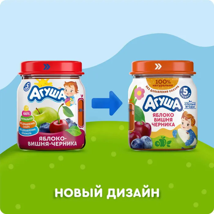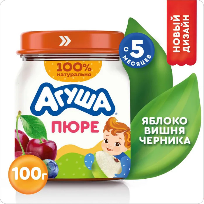 Агуша Пюре фруктовое «Яблоко-черника-вишня»