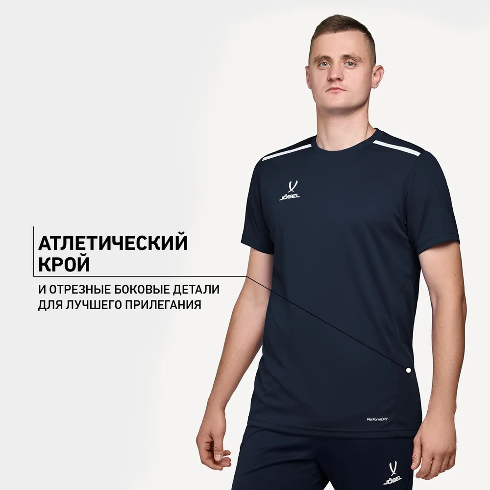 Футболка Jögel Division Training Tee — удобная экипировка для тренировок любой интенсивности. Модель выполнена из комфортного к коже материала с применением технологии эффективного влагоотведения PerFormDRY, легкая ткань отличается высокой прочностью и хорошей воздухопроницаемостью. Продуманная до мелочей конструкция не ограничивает свободу движений. Атлетический крой и отрезные боковые детали для лучшего прилегания делают Training Tee универсальной одеждой, оптимальной как для любителей, так для профессиональных спортсменов. С правой стороны располагается белый логотип, выполненный из специального силиконового материала по технологии 3D-нанесения. PerFormDRY — это специальная технология обработки тканей Jögel, которая способствует быстрому выведению влаги и помогает спортсменам чувствовать себя комфортно при интенсивных нагрузках.