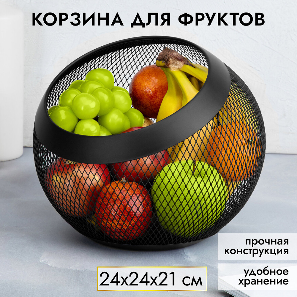 💳 Оплатить за товар можно при получении 🇰🇿 Есть бесплатная доставка по Казахстану от 1 дня 🎁 Копите бонусы с каждой покупки Декоративная корзина для фруктов El Casa 24×24×21 см изготовлена из прочного металла. Фруктовница чёрного цвета имеет стильный дизайн: выполнена в оригинальной геометрической форме шара. Круглая чаша в виде металлической сетки с обратной стороны дна имеет маленькие антискользящие накладки для устойчивости на гладкой поверхности. Металлическое блюдо — это универсальное решение для интерьера вашего дома или офиса. Можно разместить в вазе фрукты на кухне, а также украсить корзинкой гостиную или приемную. |