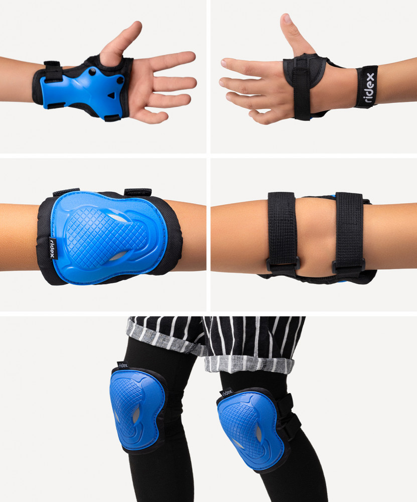 Комплект Ridex Creative предназначен для защиты коленных суставов, локтей и запястий во время катания на беговелах, самокатах, роликах, скейтбордах и другого активного отдыха. Прочный и простой в эксплуатации, такой набор будет актуален как новичкам, которым требуется страховка от случайных падений, так и опытным райдерам, делающим сложные трюки. Creative выполнен из материалов разной структуры и плотности. Многослойность позволяет обеспечить максимальную защиту при падении и амортизацию при ударе. Верхний слой изготовлен из прочного пластика (полиэтилен), отвечающего за долговечность и надежность. Внутренний материал: губка, пенополиэтилен, ткань. Добавление слоя из дышащего материала способствует большему комфорту и исключает возникновение парникового эффекта. Удобство в использовании обеспечивают регулируемые эластичные ремешки и анатомическая форма накладок.