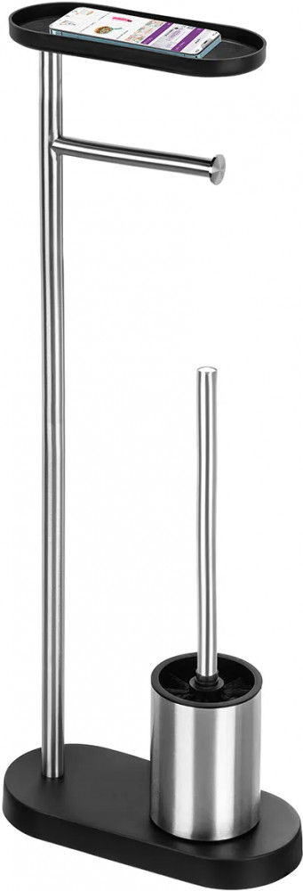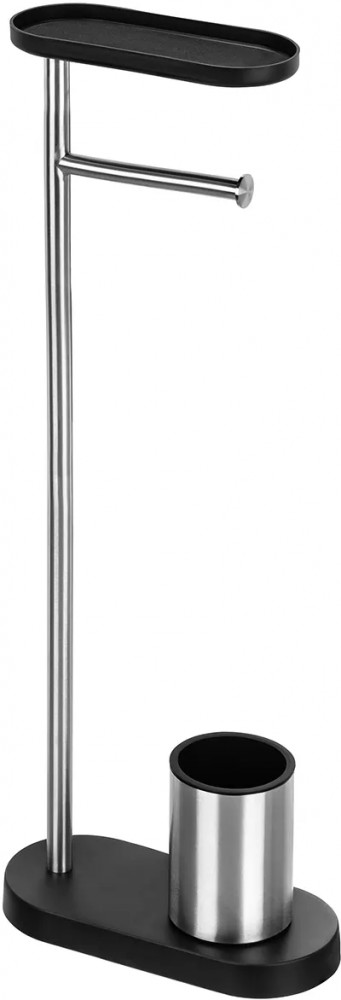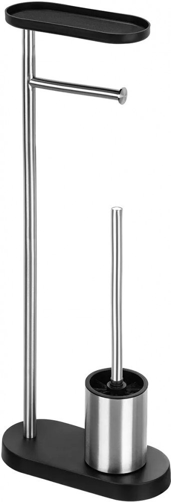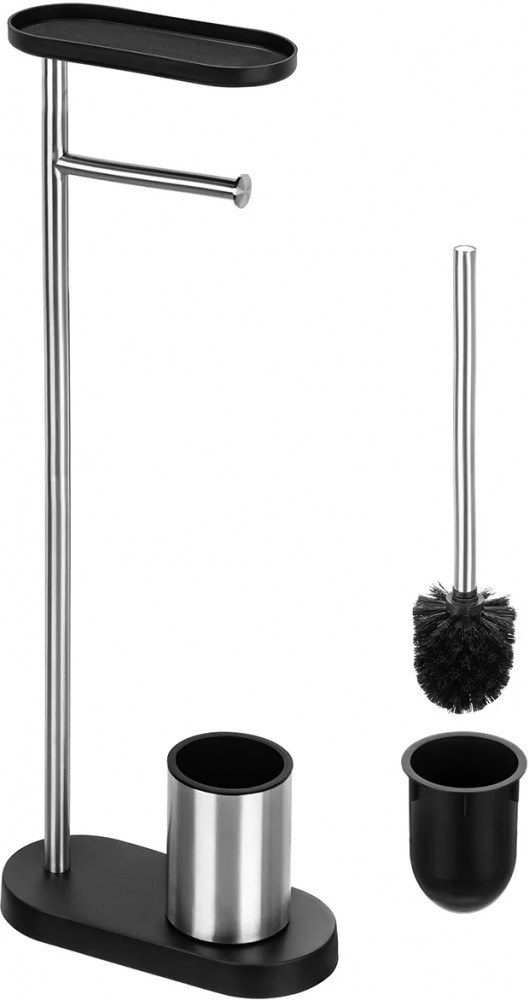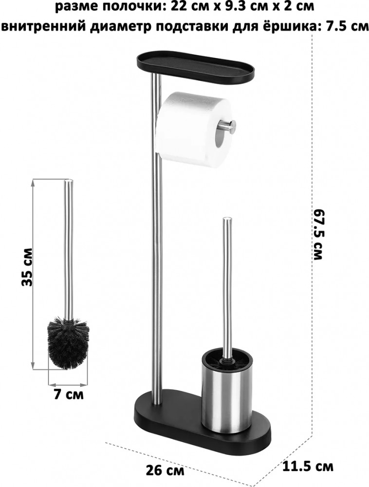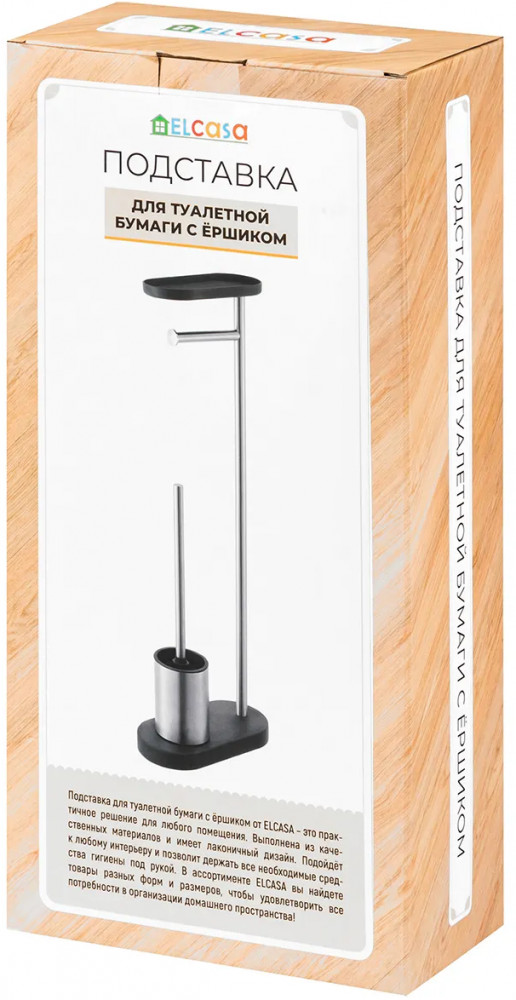 Подставка для туалетной бумаги с ёршиком и полочкой от бренда El Casa размером 26×11.5×67.5 см подойдет к любому интерьеру ванной или туалета, от минимализма до лофт. Состоит из следующих элементов: пластиковое основание с контейнером для ёршика, ёршик с жёстким густым ворсом и бамбуковой ручкой, вертикальный металлический держатель, горизонтальный кронштейн для рулона из бамбука и бамбуковая полочка. Контейнер для ёршика из подставки не вынимается, прочно к ней прикреплён. Размер полки 22×9.3×2 см, размер ёмкости для ершика 9×9х11.5 см, внутренний диаметр ёмкости для ёршика 7.5 см, размер ёршика 35×7см (длина ручки 26 см). Бамбуковая полочка с бортиками имеет бархатную чёрную подкладку на дне. Подкладка вынимается. Полку можно использовать под любые мелочи или мобильный телефон. За счёт эргономичной формы напольному вертикальному органайзеру найдется место даже в небольшой кабинке туалета. Высокая стойка устойчива на полу и не требует дополнительных действий при установке. Просто поставьте её на пол в санузел рядом с унитазом без всякого сверления. Все необходимые предметы гигиены будут под рукой. Напольный бумагодержатель станет незаменимым помощником для создания комфорта в вашем доме! В коллекции бренда El Casa представлено много функциональных товаров и стильных аксессуаров для вашего дома, которые позволят создать комфорт и уют в любом пространстве.