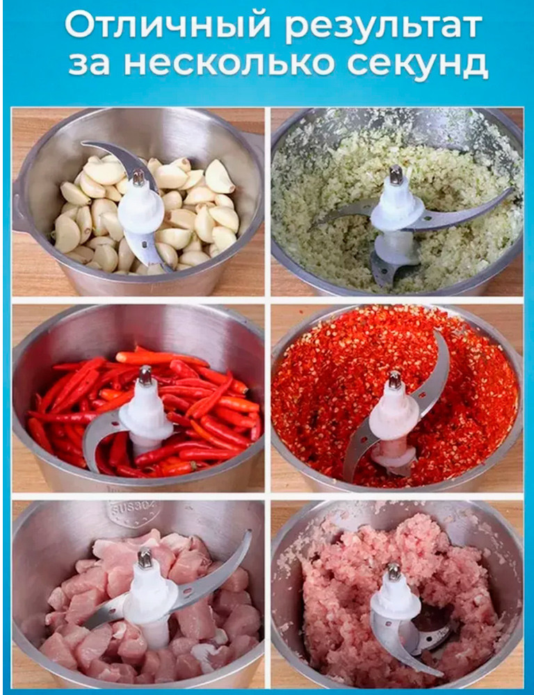 💳 Оплатить за товар можно при получении 🇰🇿 Есть бесплатная доставка по Казахстану от 1 дня 🎁 Копите бонусы с каждой покупки Измельчитель мультифункциональный кухонный комбайн будет отличным помощником на кухне. Он поможет в приготовлении многих блюд, порежет различные ингредиенты. 6 бытовых приборов в 1. Вы сможете шинковать свежие овощи спелые фрукты сделать замечательный мясной фарш взбить вкуснейшие сливки; великолепный коктейль или сочный смузи измельчить свежий кофе приготовить детское домашнее питание. На чаше есть удобные ручки, которые помогают удерживать машину при её работе. Сверху есть всего одна кнопка, нажав на которую мясорубка начинает работу. Режутся продукты благодаря острым лезвиям из высококачественной нержавеющей стали, находящимся на разных уровнях относительно друг друга. Не тратьте время на долгую мойку посуды! После использования универсальной мельницы ее очень легко мыть. Шинковка станет незаменимым приспособлением в доме или на даче. |