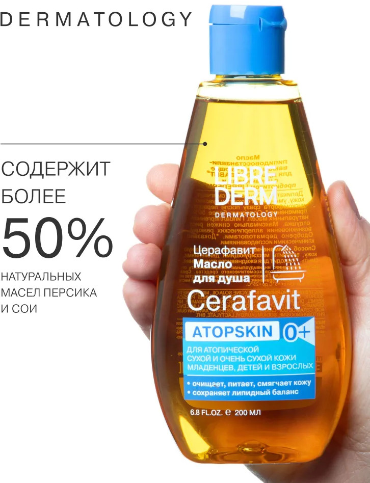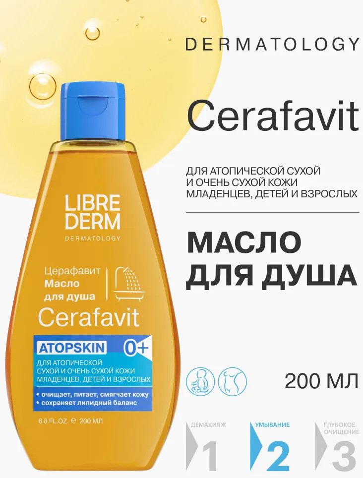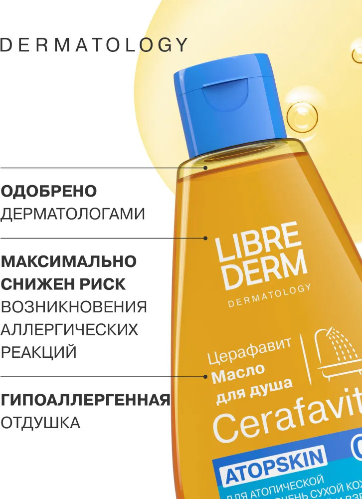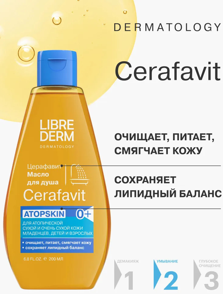 Librederm Масло для душа липидовосстанавливающее смягчающее с церамидами и пребиотиком Atopskin «Церафавит»