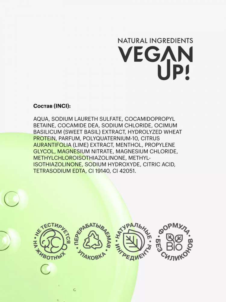 VeganUp! Шампунь для склонных к жирности волос «Coo lime. Освежающий коктейль»