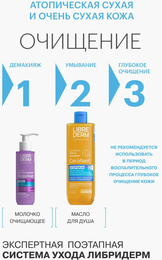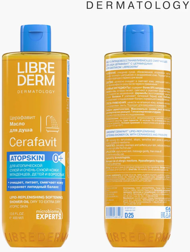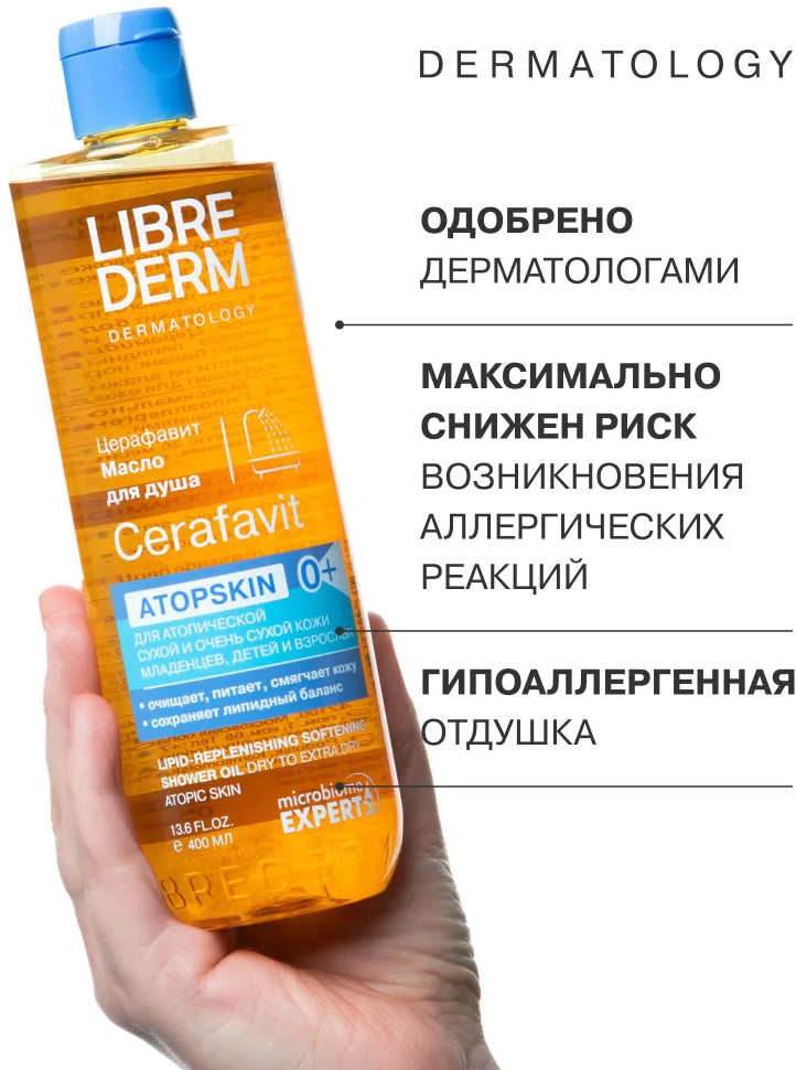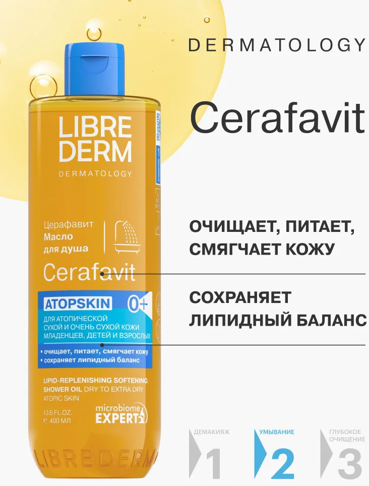 Librederm Масло для душа липидовосстанавливающее смягчающее с церамидами и пребиотиком Atopskin «Церафавит»