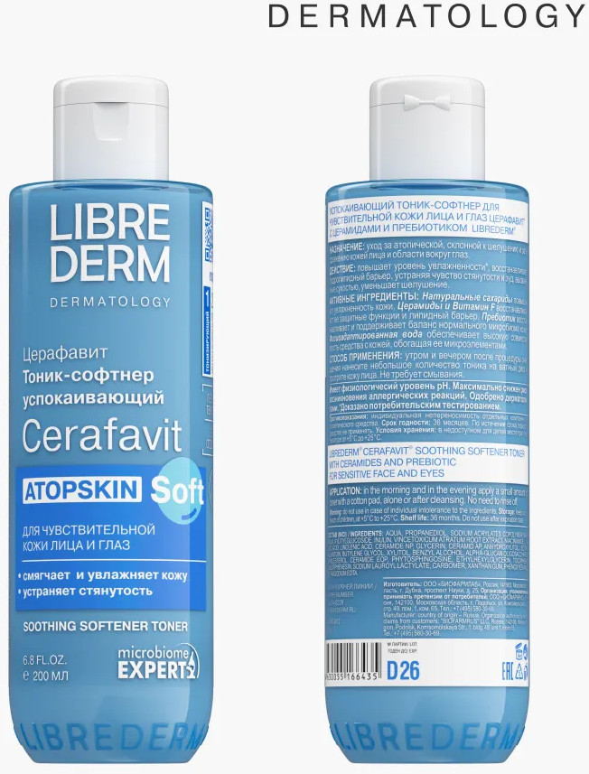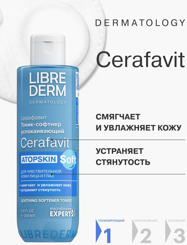 Librederm Тоник-софтнер успокаивающий с церамидами и пребиотиком Atopskin Soft «Церафавит»