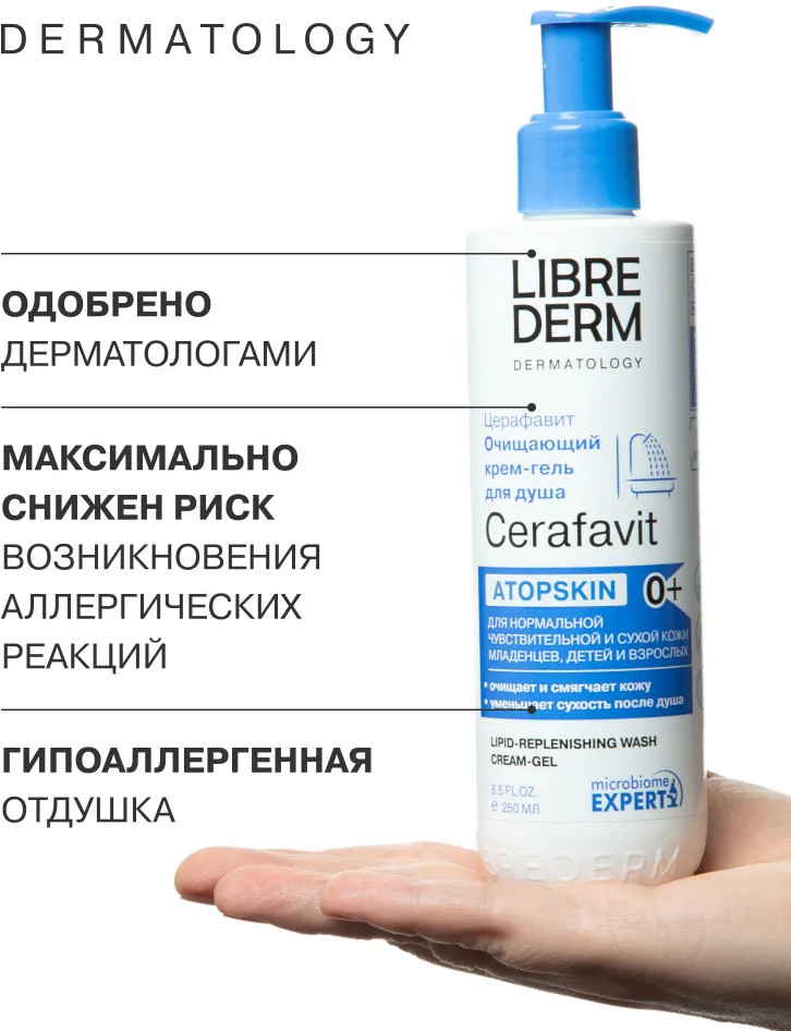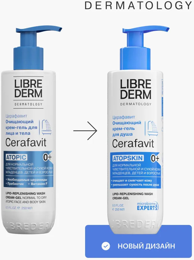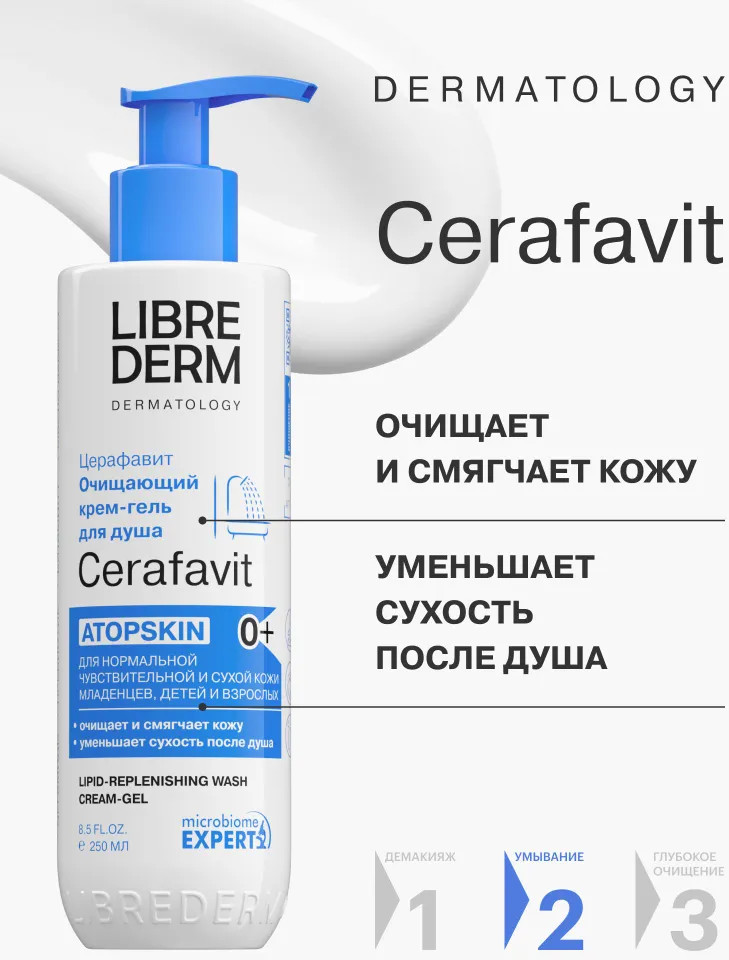 Librederm Крем-гель для душа очищающий липидовосстанавливающий с церамидами и пребиотиком Atopskin «Церафавит»