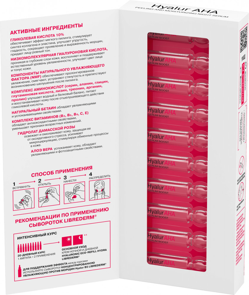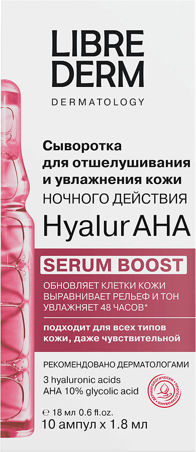 Librederm Набор сывороток для лица ночного действия для отшелушивания и увлажнения кожи «Hyalur AHA»