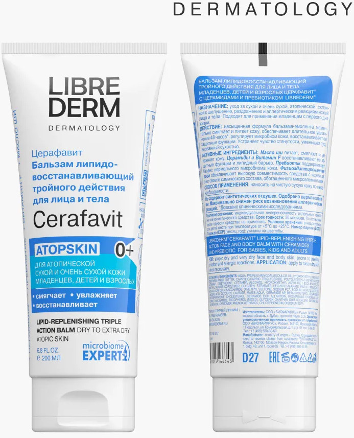 Librederm Бальзам для лица и тела липидовосстанавливающий тройного действия Atopskin «Церафавит»