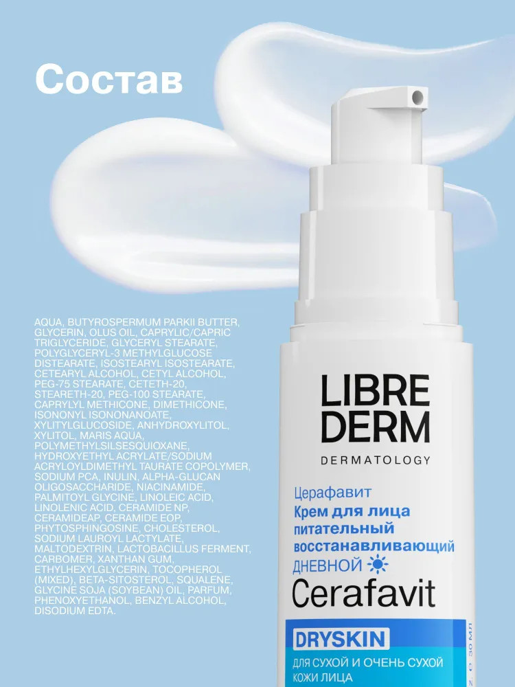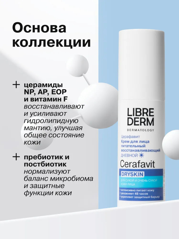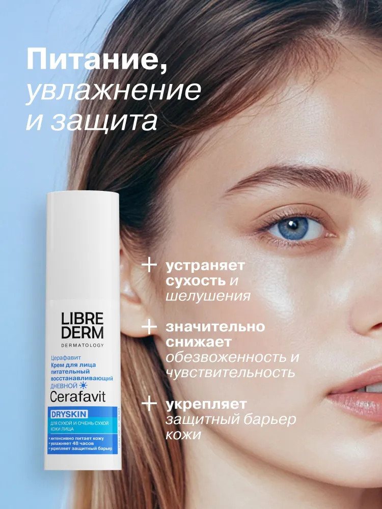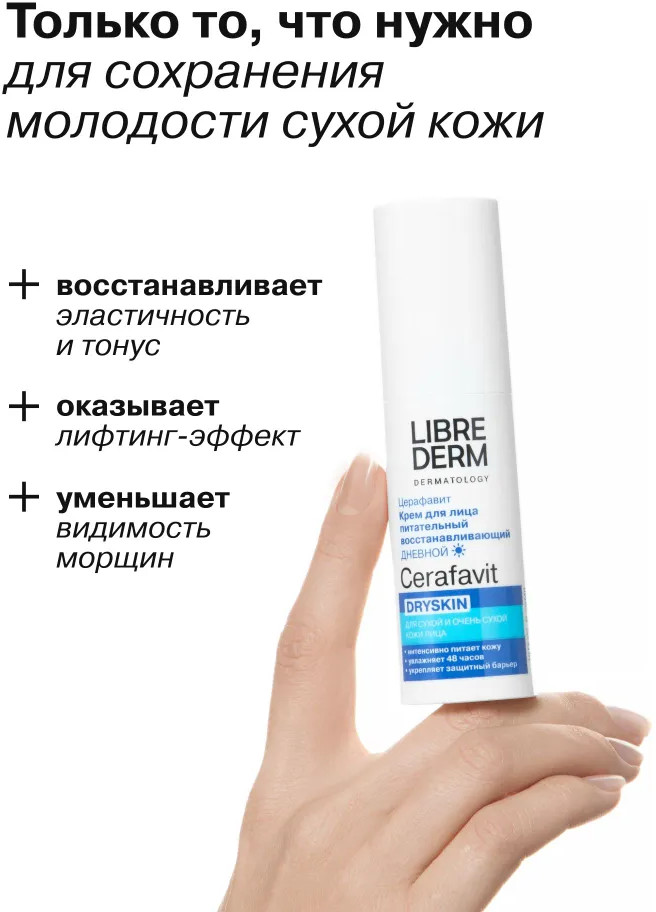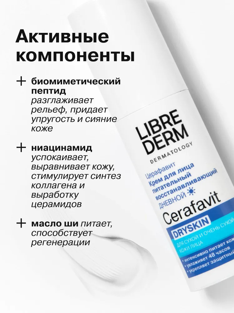 Librederm Крем для лица питательный восстанавливающий дневной Dryskin «Церафавит»