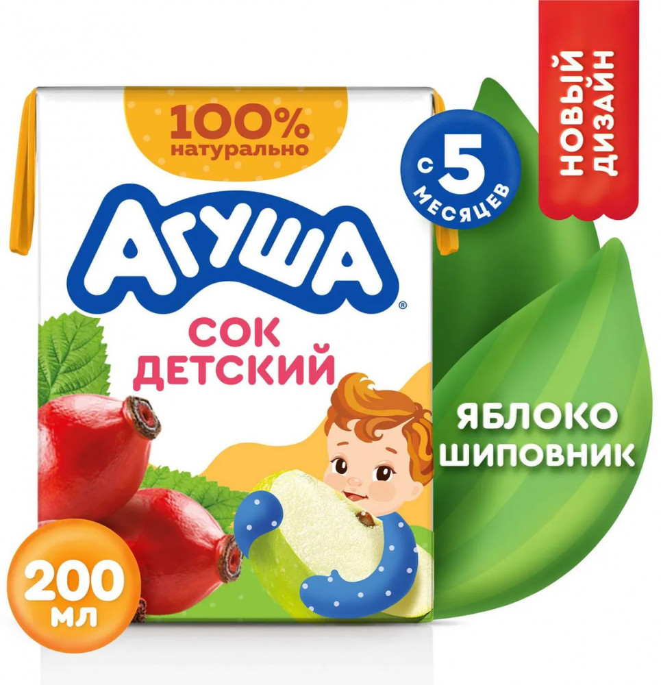Агуша Сок детский осветленный «Яблоко-Шиповник»