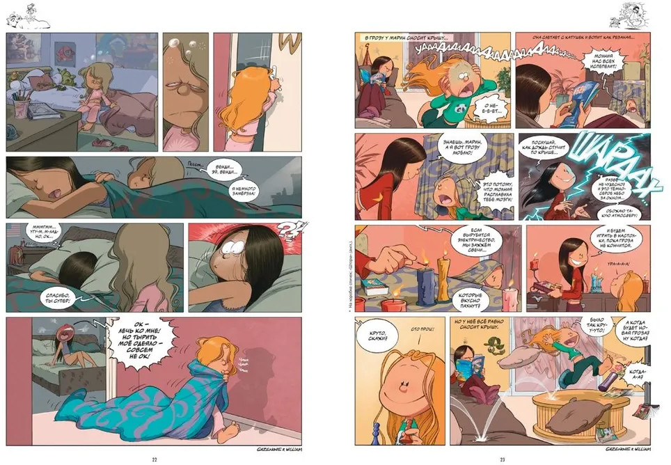 💳 Оплатить за товар можно при получении 🇰🇿 Есть бесплатная доставка по Казахстану от 1 дня 🎁 Копите бонусы с каждой покупки Серия: Графические романы. Манга Рядом с сестрой любые невзгоды нипочём! Марин и Венди охотно это подтвердят. Когда Марин сломала ногу, она знала — сестра непременно о ней позаботится: приготовит бутер с джемом, мандаринки почистит и подушечку взобьёт. Правда, та в довесок ещё и счёт за свои услуги выставила. Но Марин в долгу не осталась и подлила Венди клей в гель для укладки волос. Вот только быстро убежать от разгневанной сестры у мелкой, конечно, не получилось... И всё же дружнее Марин и Венди в мире не найдёшь — особенно, если нужно придумать план, как обвести родителей вокруг пальца или избежать генеральной уборки. Другими словами, с родной сестрой даже жуткая гроза за окном — просто прекрасный повод поиграть в настолки, а очередная ссора — возможность для крепких примирительных объятий. Короткие жизненные зарисовки, полные искрометного юмора и мелких шалостей, непременно придутся по душе как детям, так и их родителям. |