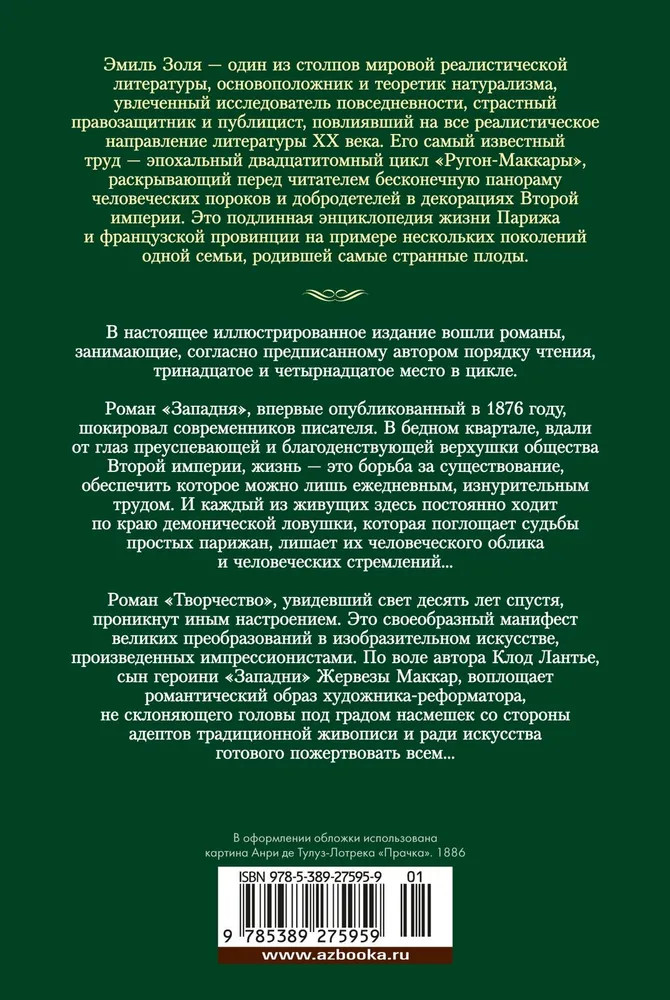 💳 Оплатить за товар можно при получении 🇰🇿 Есть бесплатная доставка по Казахстану 🎁 Копите бонусы с каждой покупки Серия: Иностранная литература. Большие книги Очередной том иллюстрированного издания полного цикла «Ругон-Маккары» в серии ИЛ. Большие книги. Эмиль Золя — один из столпов мировой реалистической литературы, основоположник и теоретик натурализма, увлеченный исследователь повседневности, страстный правозащитник и публицист, повлиявший на все реалистическое направление литературы XX века. Его самый известный труд — эпохальный двадцатитомный цикл «Ругон-Маккары», раскрывающий перед читателем бесконечную панораму человеческих пороков и добродетелей в декорациях Второй империи. Это подлинная энциклопедия жизни Парижа и французской провинции на примере нескольких поколений одной семьи, родившей самые странные плоды. |