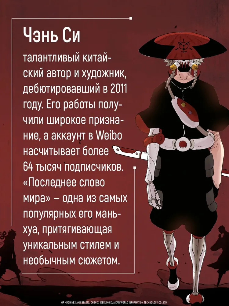 💳 Оплатить за товар можно при получении 🇰🇿 Есть бесплатная доставка по Казахстану от 1 дня 🎁 Копите бонусы с каждой покупки Серия: Графические романы. Манга Новая серия маньхуа от издательства «Азбука» — «Последнее слово мира». Это одна из самых популярных работ на китайской платформе для чтения комиксов — более 2 миллиардов просмотров! Права на издание проданы в Италию и Францию. Также по маньхуа анонсировано аниме. Цивилизация, какой ее знали раньше, мертва. Из-за неудачного научного эксперимента одна половина человечества исчезла с лица Земли, а другая оказалась разделена на две враждующие расы: киборги и духи зверей. |