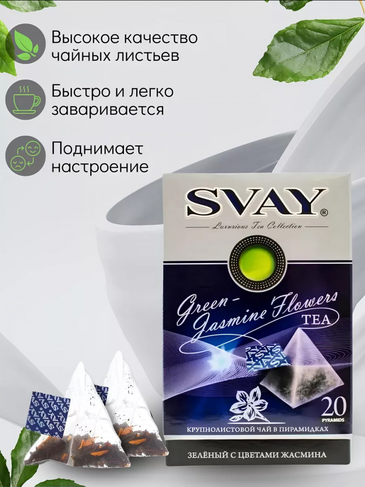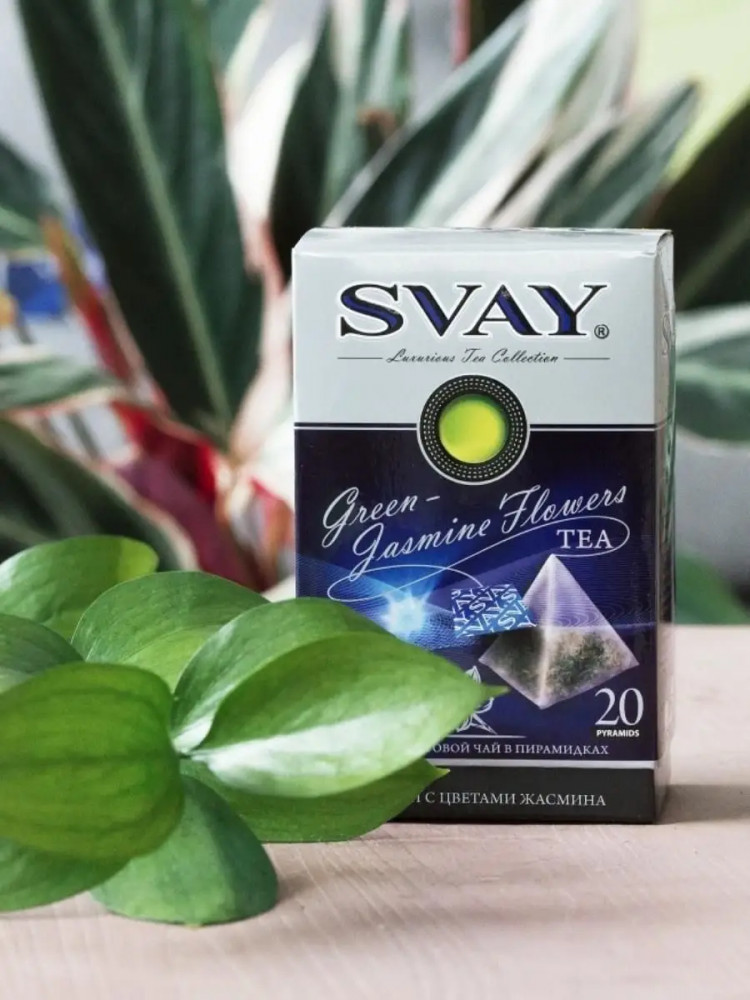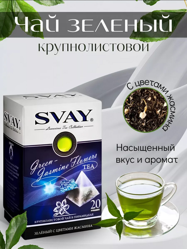 Svay Чай зеленый крупнолистовой с цветами жасмина в пирамидках «Green-Jasmine Flowers»