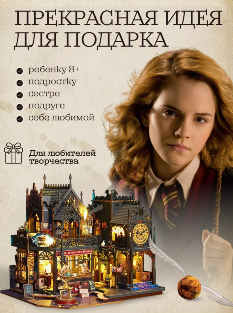 В данный момент этот товар отсутствует в продаже. Возможно, у нас найдется аналогичный или похожий товар здесь. Оригинальный конструктор румбокс не оставит никого равнодушным! Его будет интересно собирать как детям, так и подросткам и взрослым. Это будет незабываемый творческий процесс создания своими руками интерьерного roombox. Интересный и необычный подарок порадует ваших близких. Набор для творчества — то что понравится фанатам Гарри Поттера!