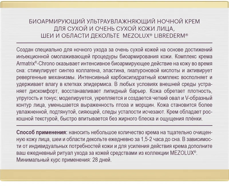 Librederm Крем для сухой и очень сухой кожи лица биоармирующий ультраувлажняющий ночной «Bioreinforcing Ultra-moisturizing Night Cream»