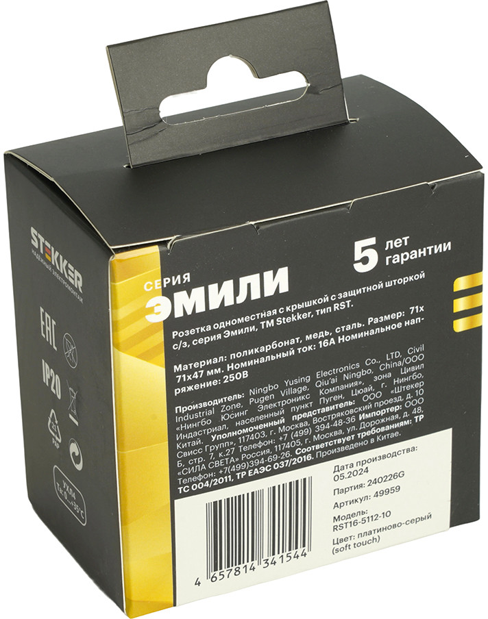 Stekker Розетка одноместная с крышкой RST16-5112-10