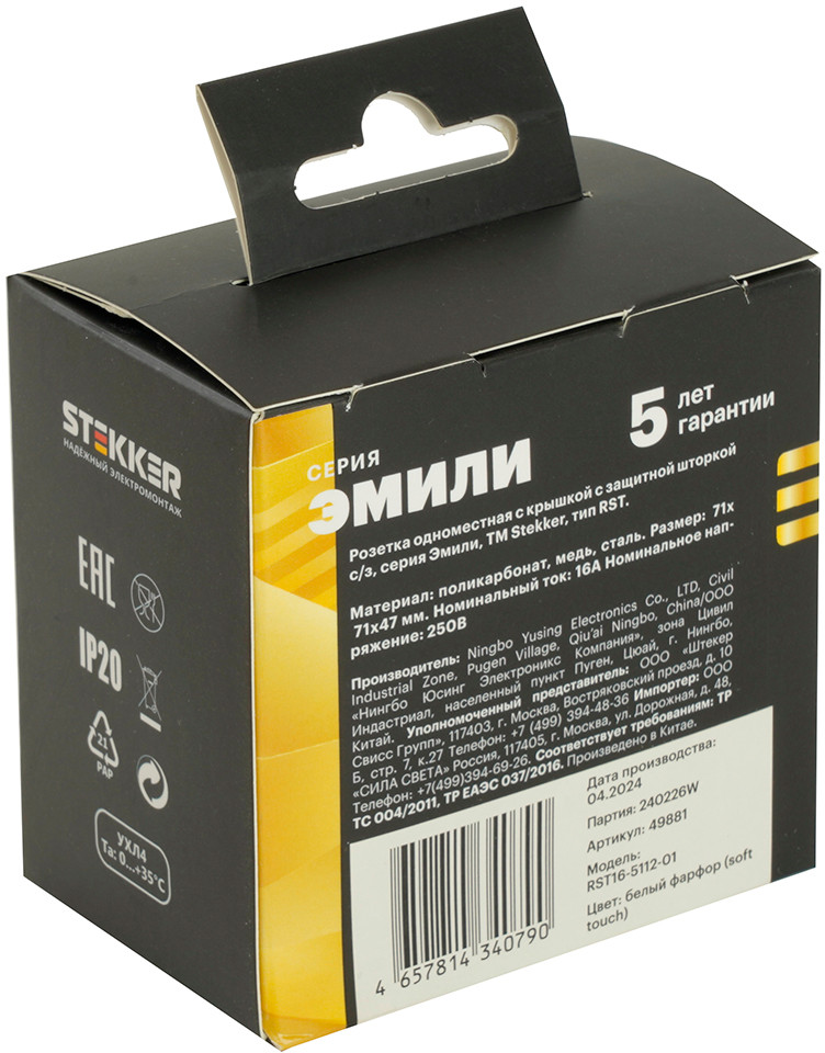 Stekker Розетка одноместная с крышкой RST16-5112-01
