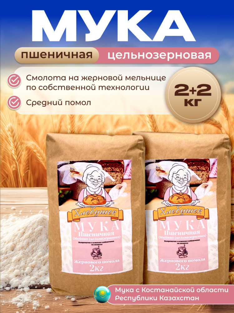 | Пшеничная цельнозерновая мука бренда «Хлебушек», смолотая на домашней мельнице с каменными жерновами. Цельнозерновая пшеничная мука от «Хлебушек» — это мука, в которой все зерно осталось в муке, и зародыш, и оболочка, что делает муку исключительно полезной. |