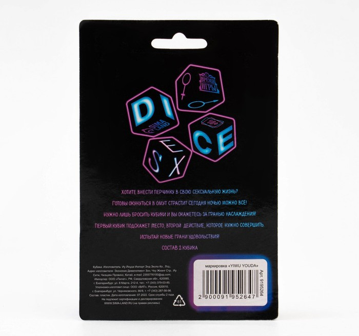 💳 Оплатить за товар можно при получении 🇰🇿 Есть бесплатная доставка по Казахстану 🎁 Копите бонусы с каждой покупки Ночь — время воплощения самых смелых желаний, и неоновые кубики вам это докажут. Бросайте их и готовьтесь к незабываемым ощущениям! Один кубик подскажет, какой позе вы предадитесь этой ночью, а второй — где вы это сделаете. Забудьте про все запреты, будет горячо! Внутри вы найдёте 2 неоновых кубика. Сделайте вашу ночь ярче! |