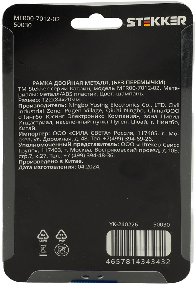 Stekker Рамка двухместная MFR00-7012-02
