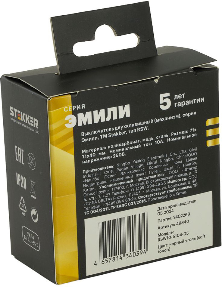 Stekker Выключатель перекрестный двухклавишный RSW10-5111-05