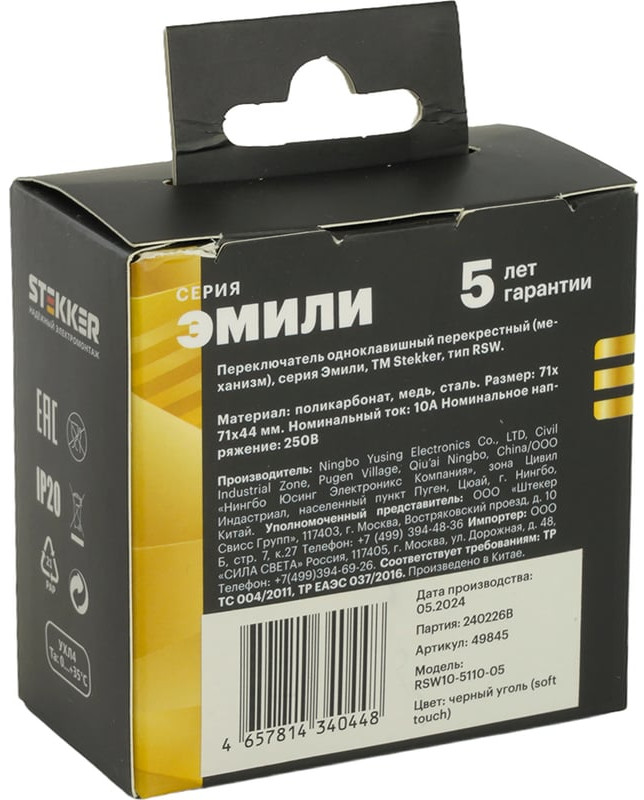 Stekker Выключатель перекрестный одноклавишный RSW10-5110-05