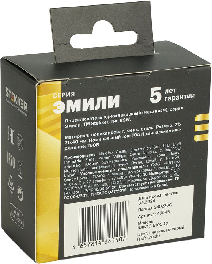 Stekker Переключатель одноклавишный RSW10-5105-10