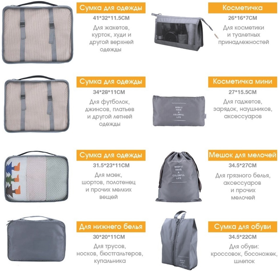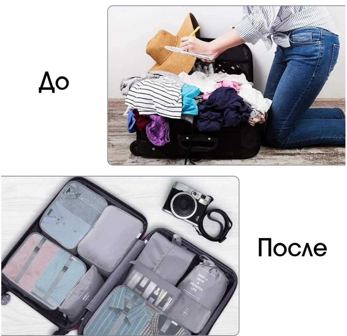 Идеальный порядок в чемодане — легко! Комплект дорожных органайзеров 8 в 1 — это ваш личный лайфхак для комфортных путешествий и аккуратных сборов. Больше никаких «все в одну кучу» — теперь у каждой вещи есть своё место.