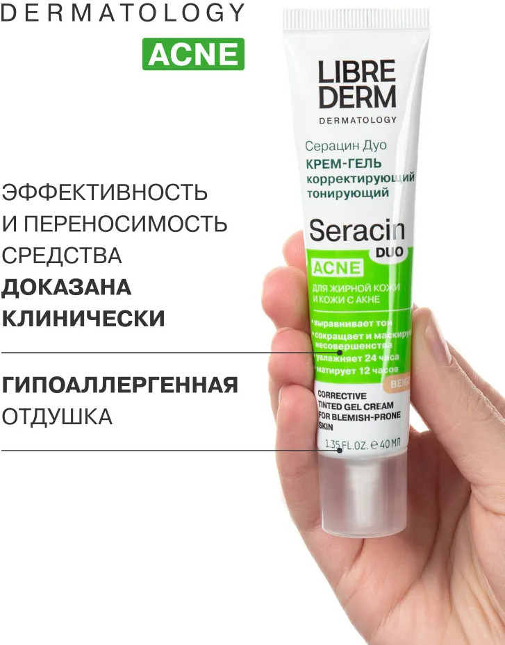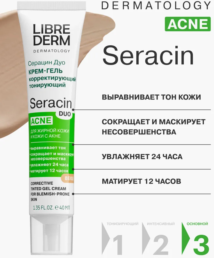 Librederm Крем-гель для лица корректирующий «Серацин ДУО», оттенок бежевый