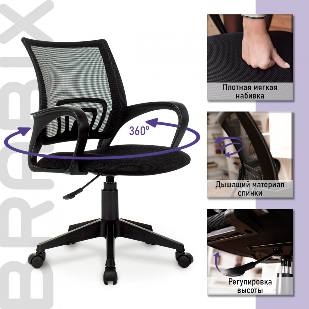 💳 Оплатить за товар можно при получении 🇰🇿 Есть бесплатная доставка по Казахстану от 1 дня 🎁 Копите бонусы с каждой покупки Brabix «Fly MG-396» — доступное, качественное кресло с эргономичной сетчатой спинкой. Прекрасный вариант для повседневной работы в офисе и дома. |