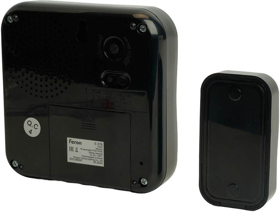 Беспроводной дверной звонок Feron E-378 с кодировкой сигнала исключает ложные срабатывания звонка при нажатии на кнопку другого звонка установленного поблизости. Звонок работает от батареек, стильный и удобный в применении — достаточно закрепить кнопку двусторонним скотчем на стене перед входной дверью, а основной механизм можно разместить в помещении.