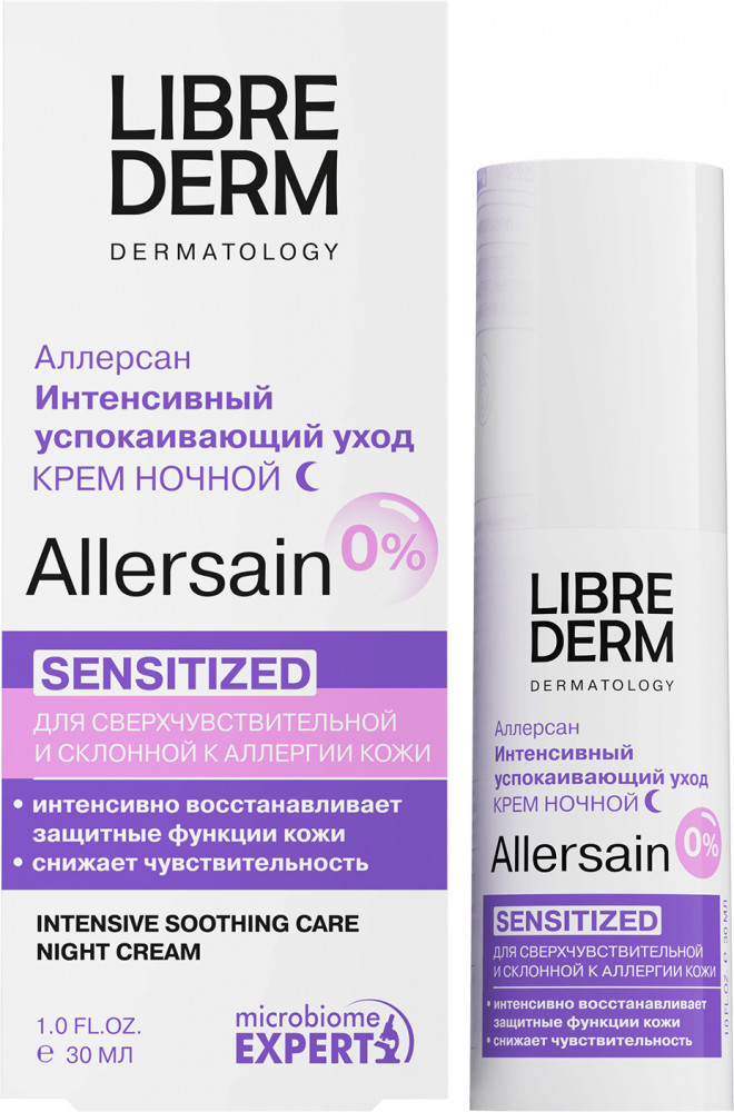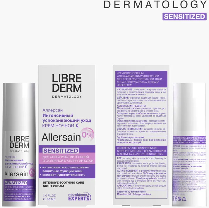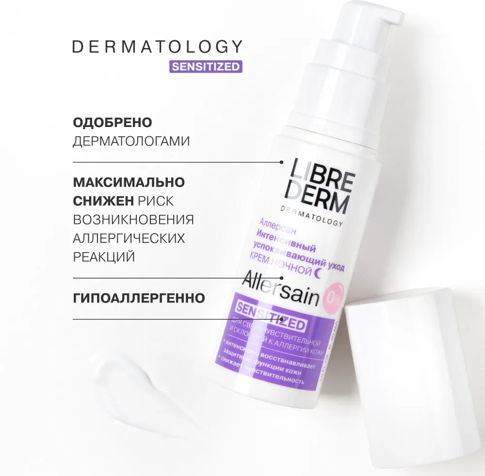 Librederm Крем для сверхчувствительной и склонной к аллергии кожи лица ночной Аллерсан Sensitized «Интенсивный успокаивающий уход»