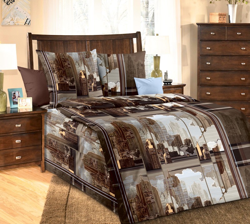 | Текс-Дизайн Комплект постельного белья "Город" (арт. 19273, 1,5-спальный, бязь, 2 наволочки 70х70), цвет коричневый