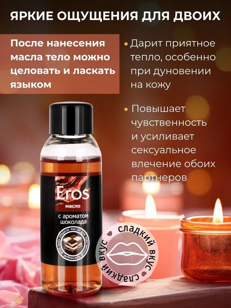 Лаборатория Биоритм Масло массажное интимное «Eros tasty»В данный момент этот товар отсутствует в продаже. Возможно, у нас найдется аналогичный или похожий товар здесь. Шоколад — это общепризнанный символ сладости и удовольствия. Именно такие чувства вы испытаете с маслом для эротического массажа «Eros tasty» с ароматом шоколада.Оно завлекает своим бархатистым терпко-сладким вкусом на грани гастрономии и эротики. |